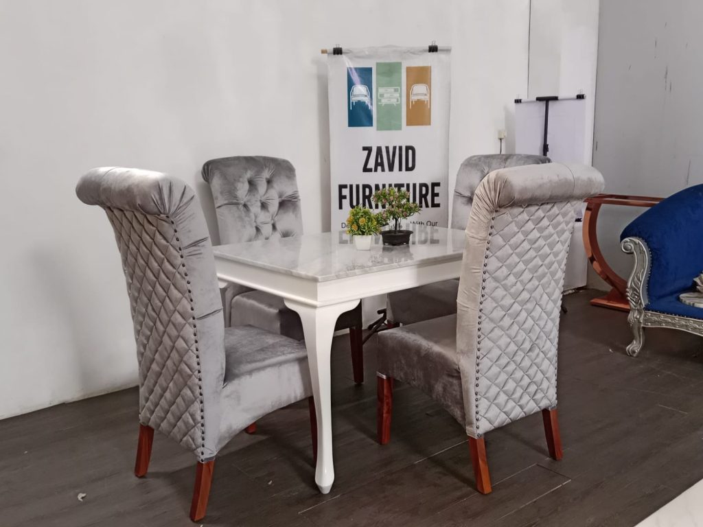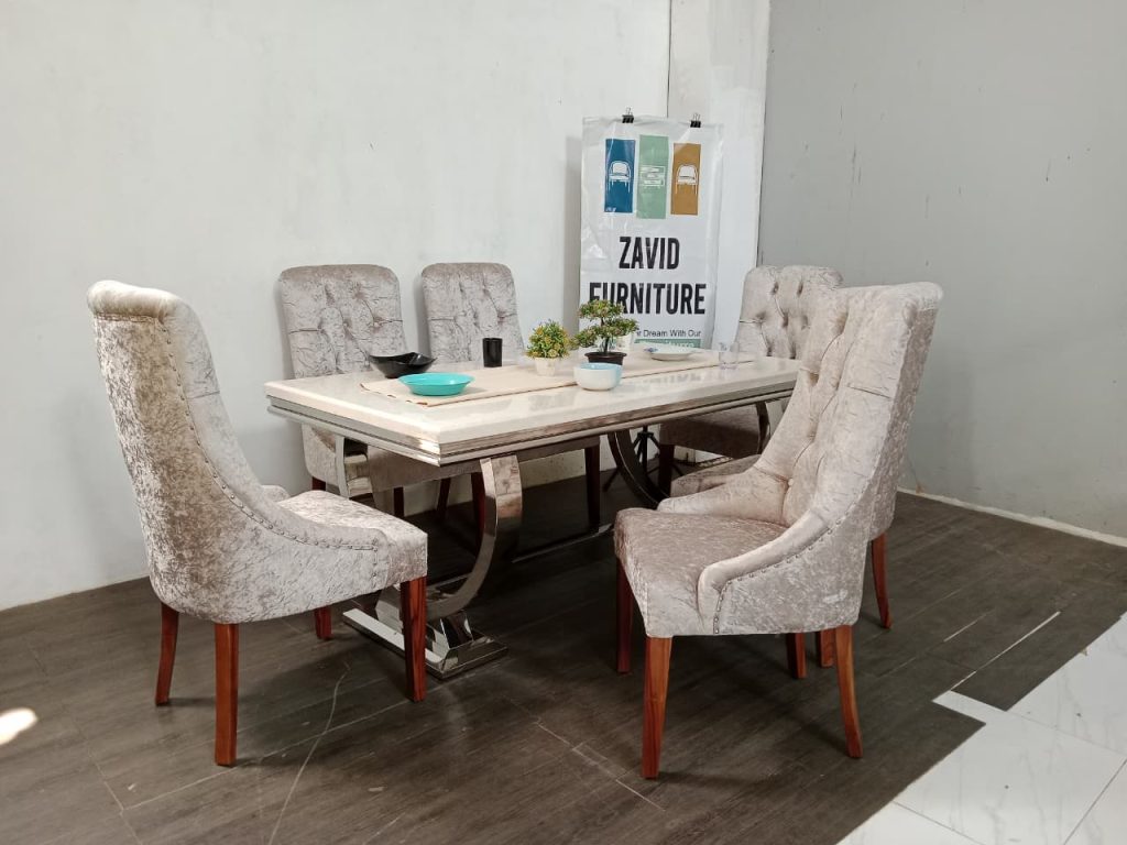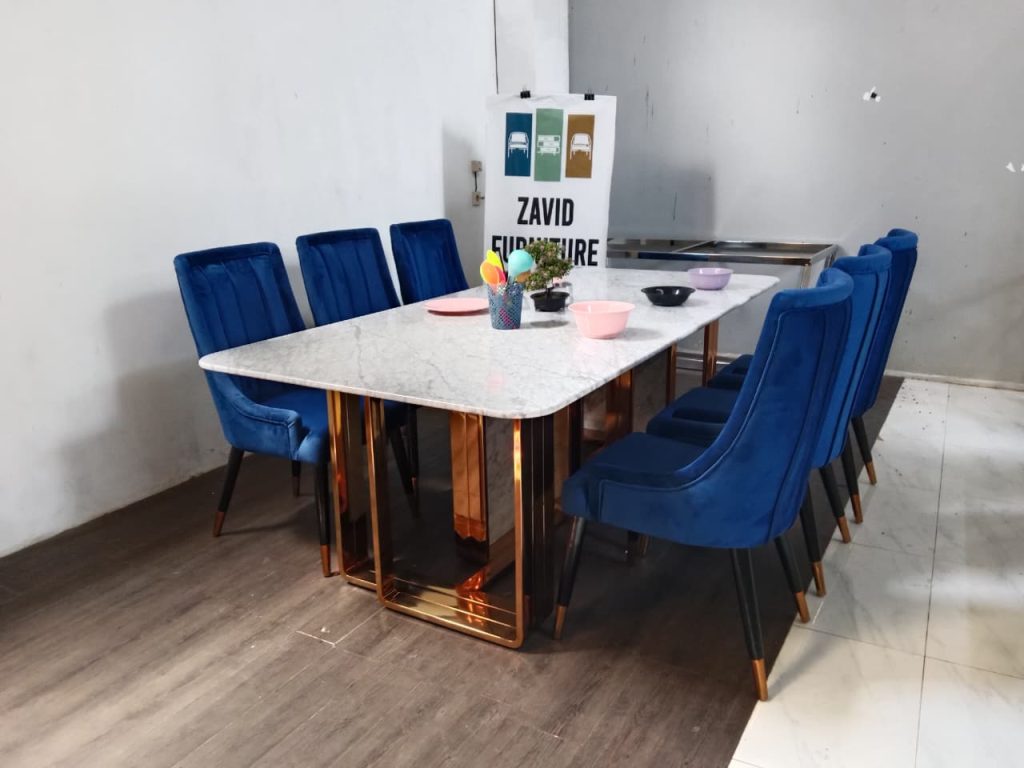 3. Meja Makan Marmer Dengan Kaki Stainles