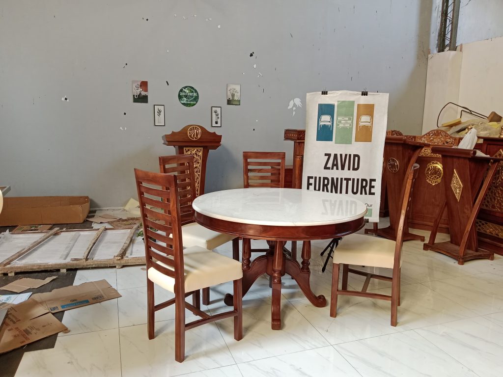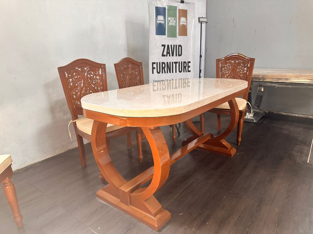2. Custom Meja Makan Marmer Kaki Kayu