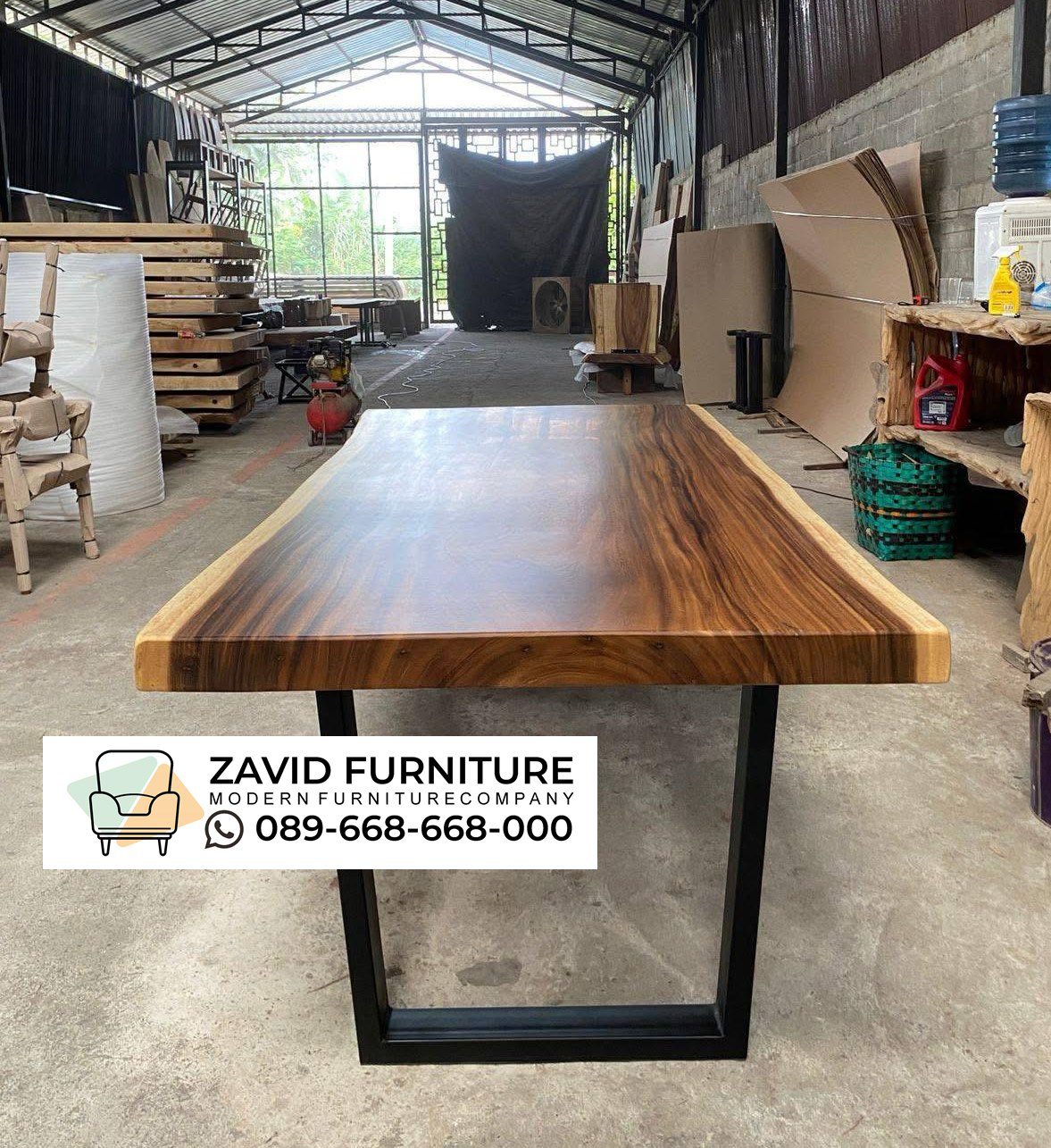 meja trembesi besar ini terbuat dari kayu trembesi dengan ukuran sangat besar dan dikombinasikan dengan kaki meja yang dapat menampung berat kayu seperti besi dan stainless.