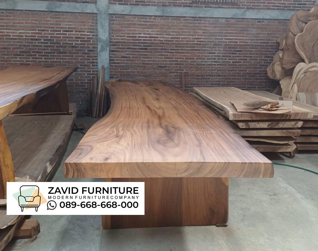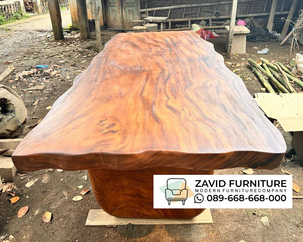 Kata Besar pastinya memiliki ukuran yang sangat besar berbeda dengan meja pada umumnya. meja dengan ukuran besar pastinya berasal dari kayu yang memiliki ukuran sangat besar. salah satunya yaitu yang paling sering digunakan di dunia furniture dalam memproduksi meja dengan ukuran besar yaitu menggunakan kayu trembesi. kayu trembesi merupakan jenis kayu terbesar di Asia yang memiliki tajuk sangat besar. Kayu trembesi, yang juga dikenal dengan nama Suar wood, adalah salah satu jenis kayu keras tropis yang berasal dari pohon Albizia saman atau pohon hujan. Kayu ini semakin populer dalam industri furnitur karena memiliki karakteristik yang unik, tampilan yang menawan, serta kekuatan dan daya tahan yang tinggi. Trembesi bukan hanya sekadar kayu biasa, tetapi material alami yang membawa sentuhan elegan, alami, dan kokoh dalam setiap potongannya. Pohon trembesi tumbuh cepat dan dapat mencapai diameter batang yang sangat besar. Karena pertumbuhannya yang relatif cepat dan persebarannya yang luas di daerah tropis seperti Indonesia, pohon ini dianggap sebagai sumber kayu yang lebih ramah lingkungan dibandingkan jenis kayu keras lainnya yang membutuhkan waktu puluhan tahun untuk tumbuh.