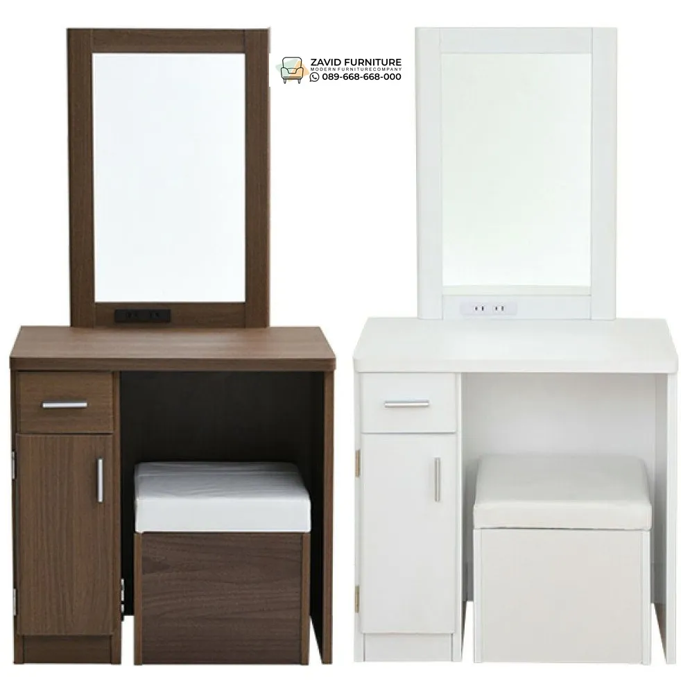 Meja rias merupakan produk yang sudah dilengkapi dengan cermin dan laci penyimpanan yang fungsional, meja rias ini tidak hanya menunjang aktivitas merias diri dengan nyaman, tetapi juga menambah nilai estetika ruangan secara keseluruhan. Jadi pada produk di atas hanya custom dengan berbeda warna saja ukuranya tetap sama berikut ukuran umum pada meja rias.