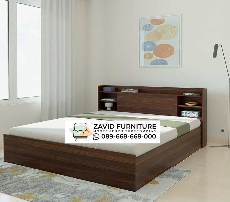 Dipan minimalis ini juga dilengkapi dengan beberapa rak di bagian sandaran untuk meletakkan majalah dan buku sehingga tempat tidur ini bukan hanya dibuat untuk meniingkatkan kenyamanan tidur namun juga membuat anda untuk menghemat ruangan sebab tidak perlu ada meja tambahan untuk meletakkan buku, cukup saja di letakkan di rak yang sudah ada di dipan.