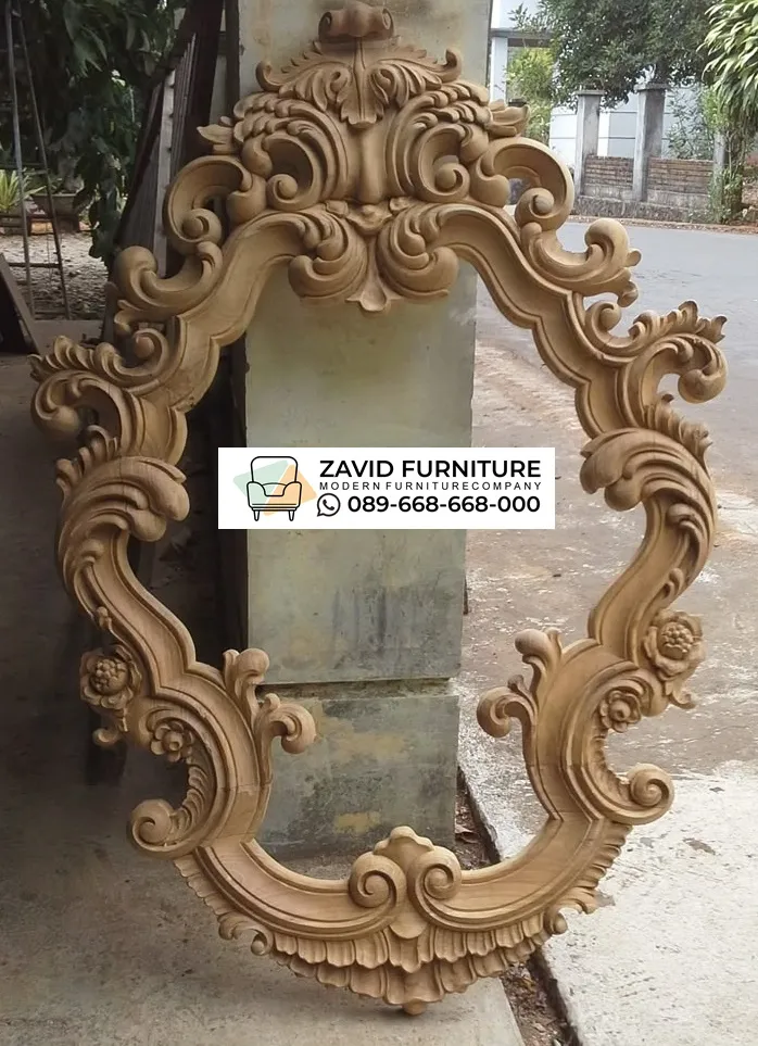 Kami akan memperkenalkan sebuah produk Frame Figura Cermin Ukir Jepara yang merupakan dekorasi interior yang menampilkan keindahan seni ukir khas Jepara yang terkenal detail, halus, dan bernilai seni tinggi. Bingkai cermin ini biasanya dibuat dari kayu jati atau kayu mahoni berkualitas, kemudian dihiasi dengan berbagai motif ukiran klasik seperti motif daun, bunga, atau ornamen khas Jepara yang dikerjakan secara teliti oleh pengrajin berpengalaman. Hasil ukiran yang rapi dan artistik membuat frame cermin ini tidak hanya berfungsi sebagai bingkai cermin, tetapi juga menjadi elemen dekoratif yang mempercantik ruangan.