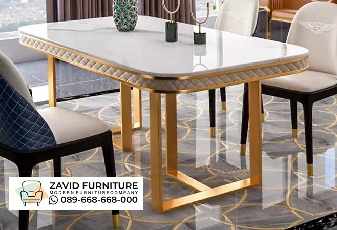 Meja makan stainless dikenal memiliki rangka yang sangat kuat karena terbuat dari material stainless steel yang tahan karat serta mampu menopang beban dengan baik. Material ini juga tidak mudah lapuk seperti kayu biasa sehingga lebih tahan lama untuk penggunaan jangka panjang. Selain itu, rangka stainless memiliki tampilan mengkilap yang memberikan kesan modern dan mewah pada ruang makan Anda. Banyak model meja makan stainless yang dipadukan dengan berbagai jenis top meja seperti marmer, kaca tempered, maupun batu sinter sehingga tampilannya terlihat semakin eksklusif dan elegan.