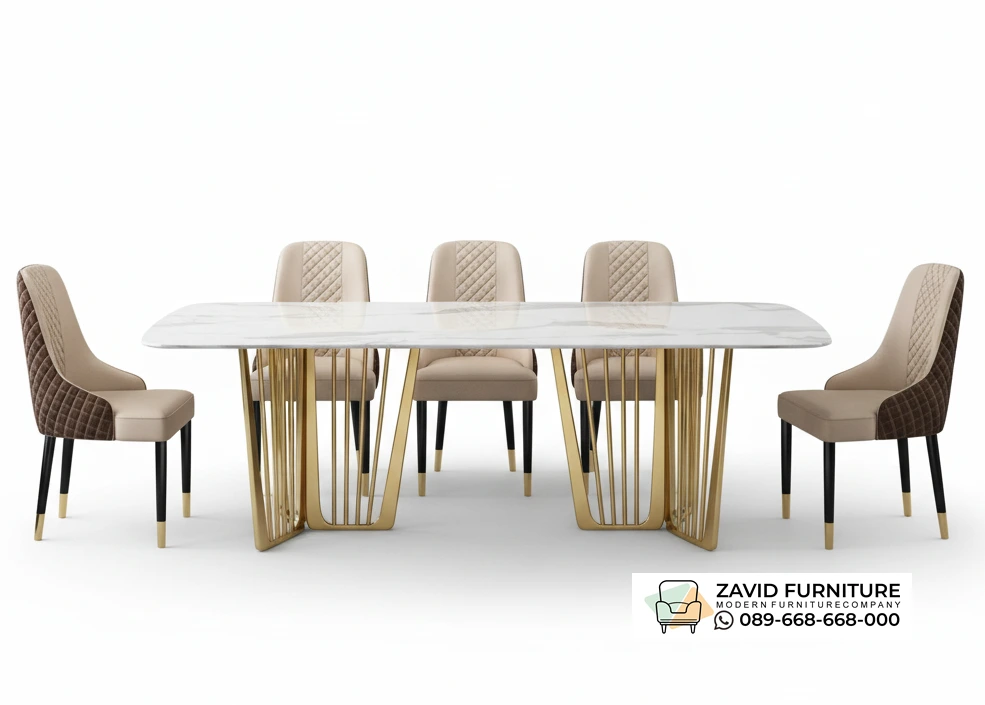 Kaki stainless memiliki ketahanan luar biasa terhadap karat, kelembapan, maupun beban berat, sehingga sangat ideal untuk menopang marmer yang dikenal cukup berat. Tidak hanya digunakan di rumah, meja ini juga banyak diaplikasikan pada restoran, hotel berbintang, hingga ruang pertemuan eksklusif, karena tampilannya yang berkelas serta kemampuannya menciptakan kesan ruang makan yang lebih mewah.