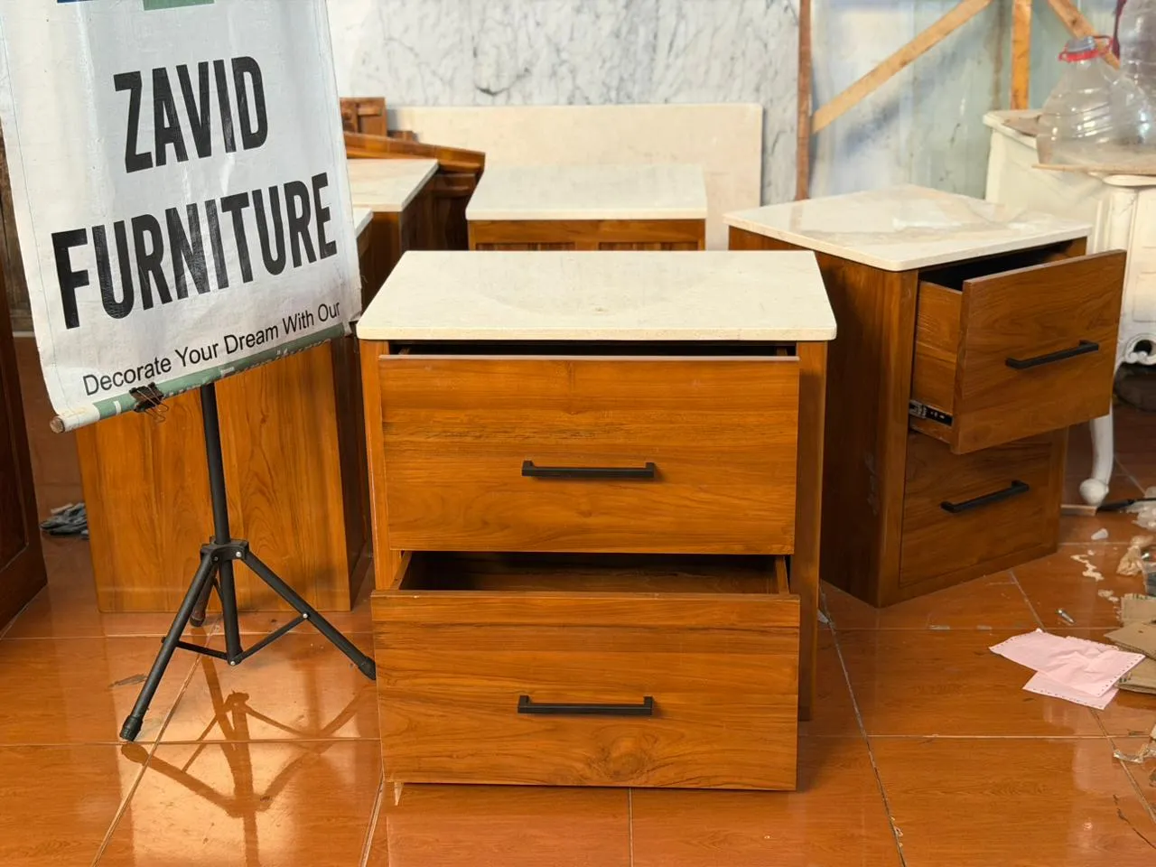 kehadiran Nakas Kayu Jati Kombinasi Marmer mampu memberikan sentuhan elegan sekaligus solusi penyimpanan praktis di samping tempat tidur Anda. Kami menghadirkan nakas berbahan kayu jati solid pilihan, yang terkenal akan kekuatan, keawetan, serta keindahan serat alaminya. Produk ini dirancang untuk Anda yang mengutamakan kualitas, tampilan mewah, dan ketahanan jangka panjang.