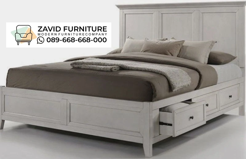 Dilengkapi dengan beberapa laci yang terintegrasi di sisi tempat tidur. Laci-laci ini menggunakan rel geser yang halus, sangat fungsional untuk menyimpan sprei, selimut, atau pakaian tanpa membutuhkan ruang tambahan. Warna putih dan desain minimalisnya sangat mudah dipadukan dengan berbagai tema dekorasi—mulai dari gaya Skandinavia, Klasik, hingga Modern Kontemporer.