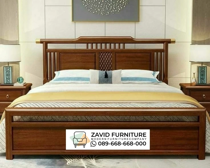 Pada artikel ini kami akan menjelaskan secara singkat tempat tidur kayu jati terbaru. Tempat tidur ini dirancang dengan pendekatan minimalis kontemporer, yang menonjolkan keindahan serat kayu jati asli. Desain utamanya berfokus pada headboard yang memiliki ukiran geometris di tengah, menciptakan suasana mewah namun tetap sederhana. Kami menggunakan kayu jati solid yang dikenal tahan terhadap rayap, kuat, dan bisa bertahan selama puluhan tahun. Kombinasi antara jeruji vertikal dan panel kayu padat dengan sentuhan kuningan atau emas di bagian atas headboard memberikan tambahan kesan eksklusif.
