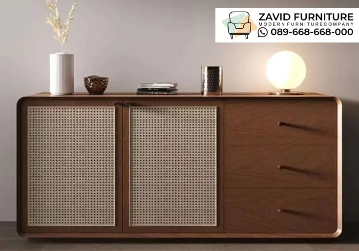Kabinet Kayu Minimalis Kombinasi Rotan ini memiliki desain Mid-Century Modern yang menggabungkan fungsi yang baik dengan tampilan yang menawan. Kombinasi kayu dan rotan menciptakan suasana rumah yang nyaman, hangat, dan sangat menarik untuk difoto.