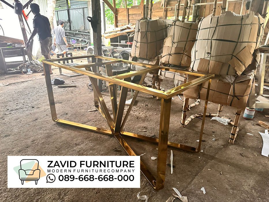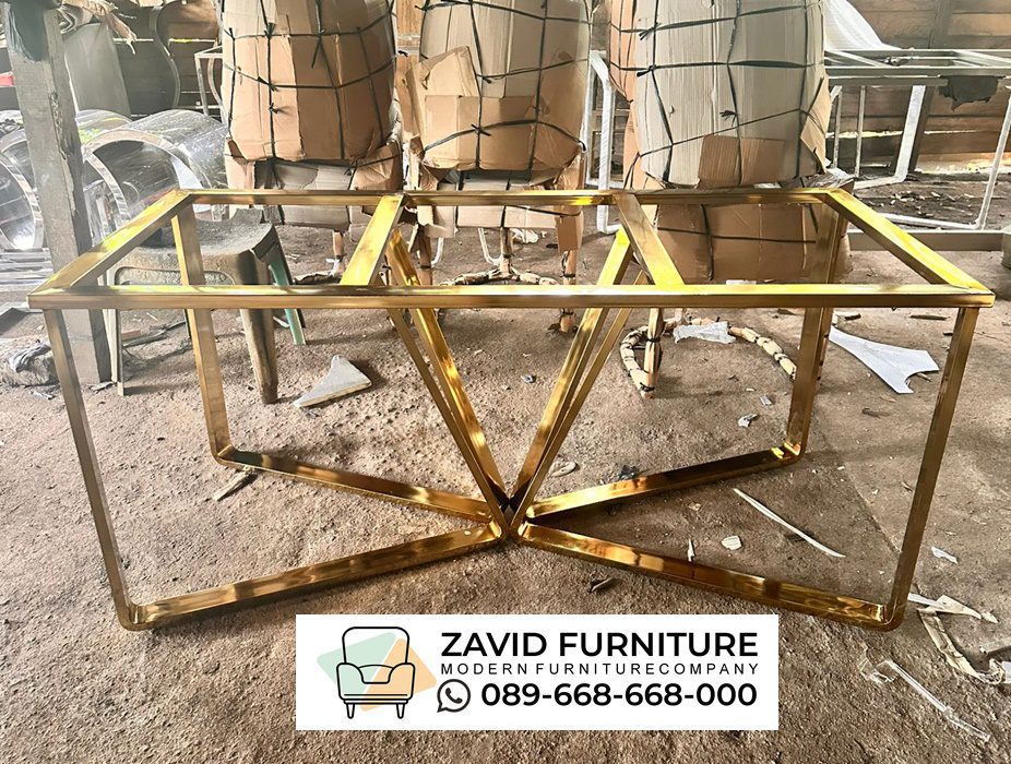 Kaki meja stainles Klaten ini sengaja di desain dengan finishing warna emas atau gold agar lebih terlihat mewah dan modern. kaki meja stailes dengan bentuk persegi panjang dapat digunakan untuk banyak anggota karena dapat digunakan di setiap sisi dengan saling berhadapan selain itu juga sangat cocok untuk acara formal dengan teman teman, keluarga atau dengan klient dan kolega penting anda.