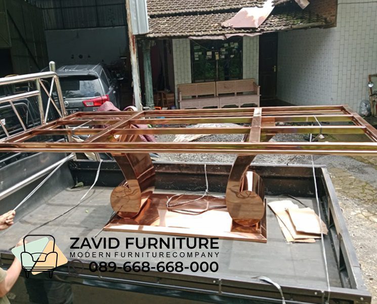 Meskipun memiliki kesan mewah, kaki meja stainles rose gold juga bisa dipadupadankan dengan berbagai material lainnya, seperti kaca, kayu, atau marmer, agar lebih menciptakan desain yang elegan namun tetap modern.