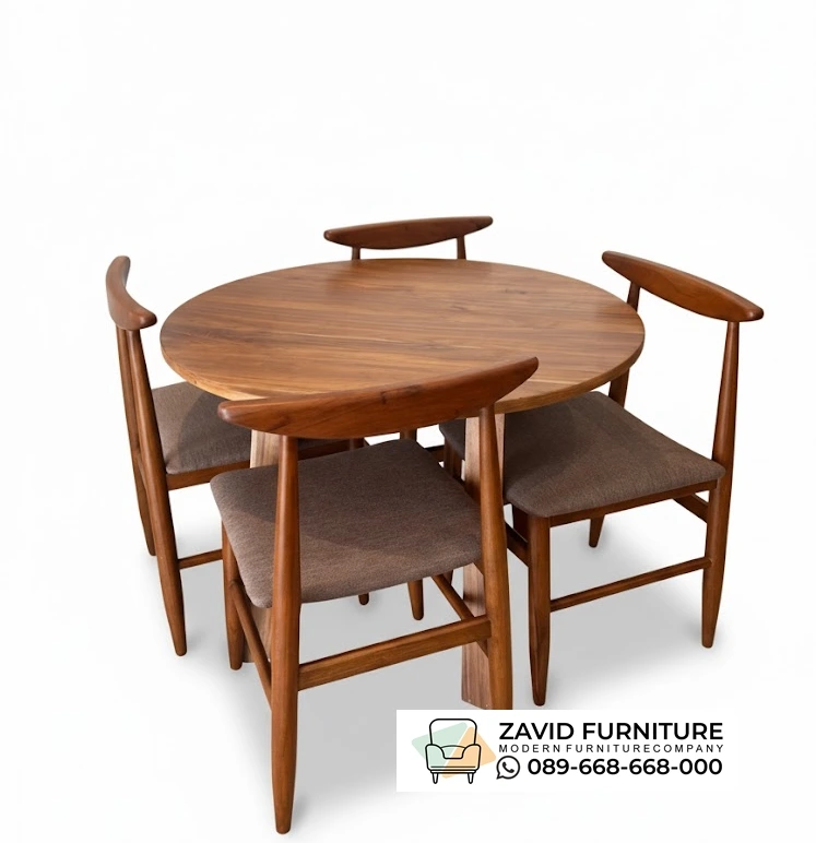 Meja makan dengan 4 kursi sangat cocok untuk anda yang memiliki keluarga kecil, desain meja dengan 4 kursi dapat diletakkkan di cafe, hotel, restoran, villa dengan ukuran yang tidak terlalu besar. Meja Kayu Jati Bundar 4 Kursi merupakan salah satu produk yang ada di toko kami dan juga yang terlaris karena memang banyak bangett yang tertarik lohh..meskipun produk terbaru tetapi sudah banyak sekali yang tertarik dan ingin langsung memilikinya, Bentuknya yang melingkar menciptakan kesan harmonis dan mempererat interaksi antar pengguna. Tanpa sudut tajam, meja jati bulat terasa lebih lembut secara visual dan aman untuk digunakan di ruang keluarga, ruang makan, maupun area publik seperti kafe dan restoran. Bentuk ini juga membuat aliran percakapan lebih natural karena semua orang duduk dalam posisi yang sejajar dan seimbang.
