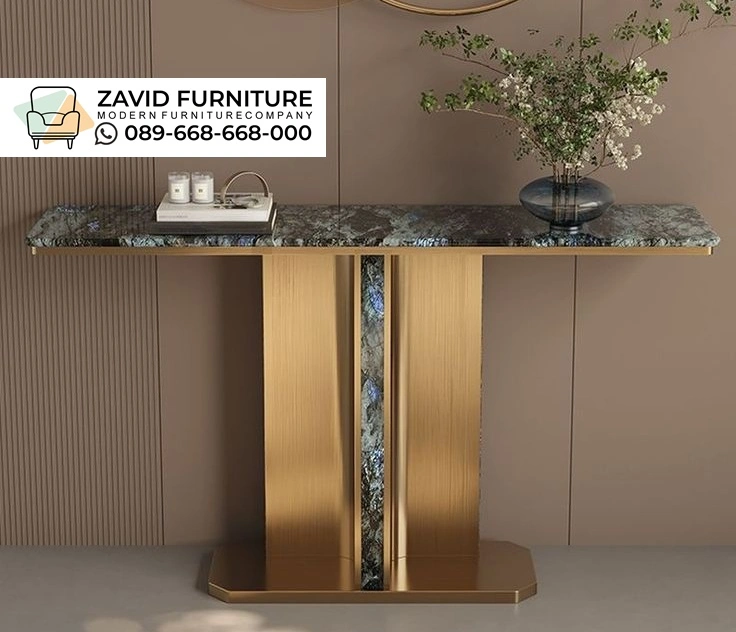 Meja Konsul Elegan Aksen Emas Modern