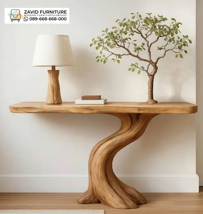 Meja konsul ini sangat cocok ditempatkan di ruang tamu, foyer, lorong rumah, maupun area dekoratif lainnya sebagai elemen interior yang mencuri perhatian. Bagian atas meja dapat digunakan untuk menaruh vas bunga, lampu meja, patung dekorasi, atau hiasan rumah lainnya sehingga ruangan terlihat lebih hidup dan berkelas. Dengan desain artistik dan material kayu jati pilihan, meja konsul bentuk pohon tidak hanya berfungsi sebagai meja dekorasi tetapi juga menjadi karya furnitur mewah yang mampu memperindah tampilan interior rumah.