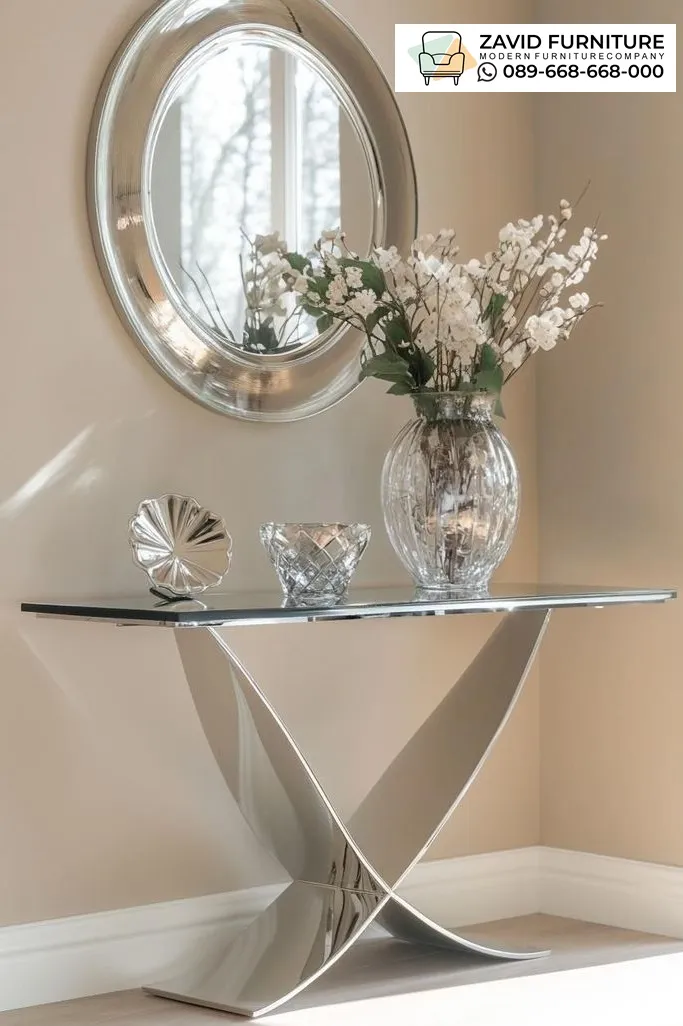 Meja konsul biasanya diletakkan pada area utama seperti foyer maupun area tunggu, berhubung jakarta menjadi pusat pemerintahan pastinya sangat memerlukan meja ini yang bisa digunakan untuk meletakkan barang-barang dekoratif, seperti vas bunga, lampu meja, atau bingkai foto. Terbuat dari bahan berkualitas marmer terkenal kuat, tahan lama, dan memiliki serat pola warna yang indah, dengan dipadukan kaki meja dari stainless gold berbentuk unik yang memberikan kesan mewah dan tahan karat, serta memberikan kesan kokoh pada meja.