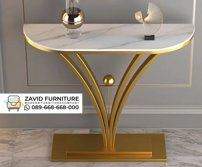 Desain Meja Konsul Kaki Setengah Lingkaran Gold