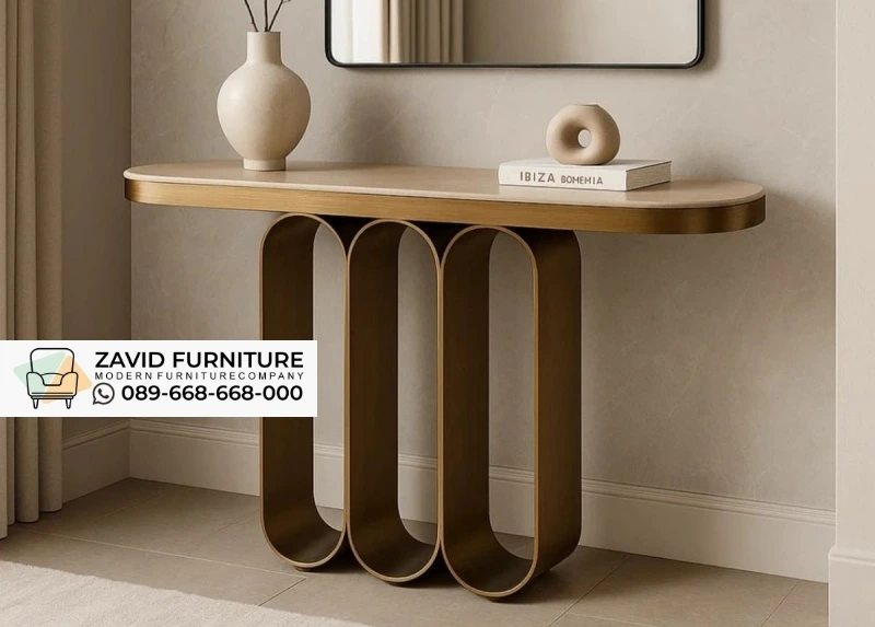 Meja konsul ini bukan sekadar perabot, melainkan sebuah karya seni. Meja Konsul Oval Geometris Kontemporer Klaten memadukan estetika modern dengan sentuhan kemewahan yang halus, cocok bagi Anda yang menginginkan interior yang chic dan elegan.