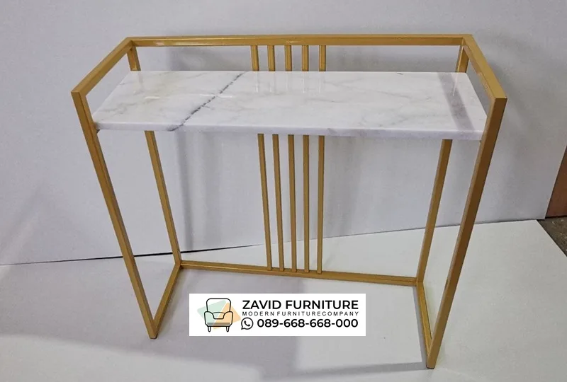 Meja Konsul Top Marmer Eksklusif ini menggabungkan keanggunan bahan alami dengan ketegasan gaya industrial modern. Dengan Top Table Marmer Carrara putih bertekstur halus, meja ini menampilkan nuansa bersih dan mewah.