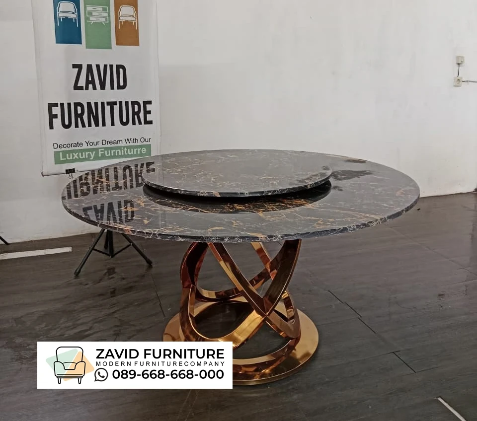 Dengan adanya meja makan bulat marmer akan memberikan kesan suasana ruang makan yang lebih modern, hal ini bisa di lihat dari desain daun meja dari bahan marmer yang bisa dipilih warna putih ataupun warna hitam, model alur yang unik pada meja marmer ini juga akan menampakkan kesan lebih mewah karena dari model alur meja yang tak beraturan memberikan model yang sedikit kemewahan di bandingkan dengan polosan saja, mungkin akan membosankan. jadi dapat disimpulkan bahwa meja makan marmer menjadi pilihan ideal bagi Anda yang menginginkan suasana makan yang hangat, intim, dan penuh gaya. Dengan bentuk bulat yang elegan serta material marmer berkualitas tinggi, meja ini menghadirkan perpaduan sempurna antara keindahan alami dan kemewahan modern. Cocok ditempatkan di ruang makan keluarga, ruang tamu, hingga area restoran mewah yang mengutamakan tampilan eksklusif dan kenyamanan maksimal.