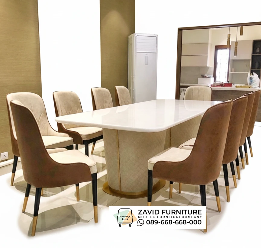 Seiring berkembangnya zaman dan perubahan tren, Kini meja makan tidak hanya terbuat dari kayu tapi juga menggunakan bahan granit yang sudah terkenal dengan kualitasnya dan tahan panas. Selain kuat, granit juga memberikan tampilan yang estetik sekaligus memiliki corak yang unik sehingga memiliki tampilan yang mewah.