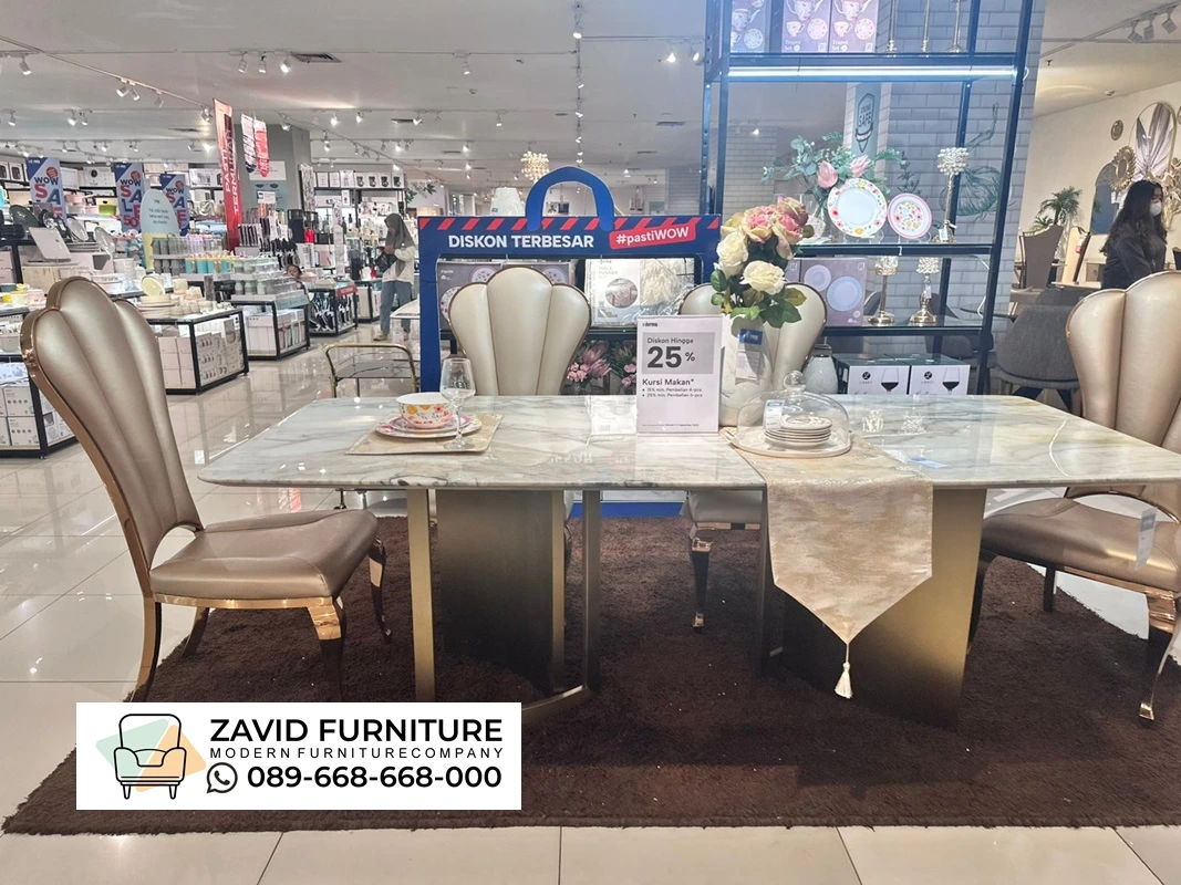 Meja 6 Kursi Bahan Marmer selain dapat membuat ada lebih nyaman makan bersama keluarga tentu saja akan membuat tampilan ruang makan anda semakin lebih mewah dengan perpaduan meja makan yang terbuat dari marmer. meja makan marmer selalu mampu menyatu dengan estetika ruangan. Karena keawetan dan daya tahan marmer, meja ini juga dapat digunakan sebagai investasi jangka panjang. meja makan marmer import juga sering dijadikan sebagai elemen dekoratif yang meningkatkan nilai estetika rumah agar terlihat lebih modern dan mewah. Selain meja makan dengan 6 kursi jika anda ingin dengan ukuran yang lebih besar kami juga memiliki produk meja makan marmer 8 kursi yang tentunya tidak kalah dari meja makan lainya. meja makan ini dapat anda temukan di toko meja makan marmer yang hanya ada di toko kami dan pastinya dengan harga yang lebih terjangkau dari toko lainnya yang ada diluar sana.