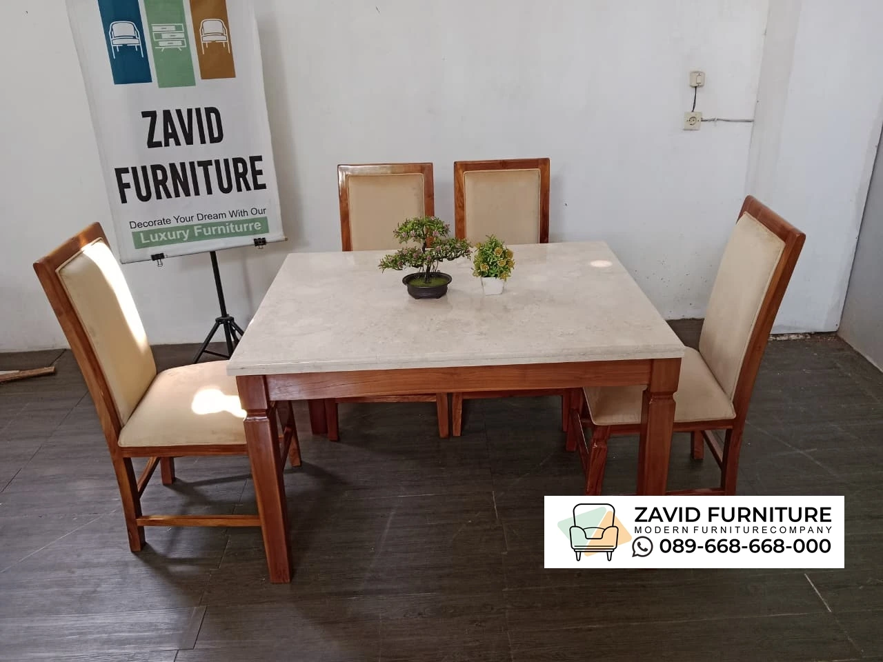 Meja makan marmer untuk 4 kursi ini sangat cocok untuk keluarga kecil atau pasangan dengan anak-anak, serta untuk ruang makan yang lebih kecil. Ukuran meja yang kompak membuatnya lebih mudah ditempatkan di ruangan kecil, sehingga cocok untuk apartemen atau rumah dengan ruang makan terbatas.