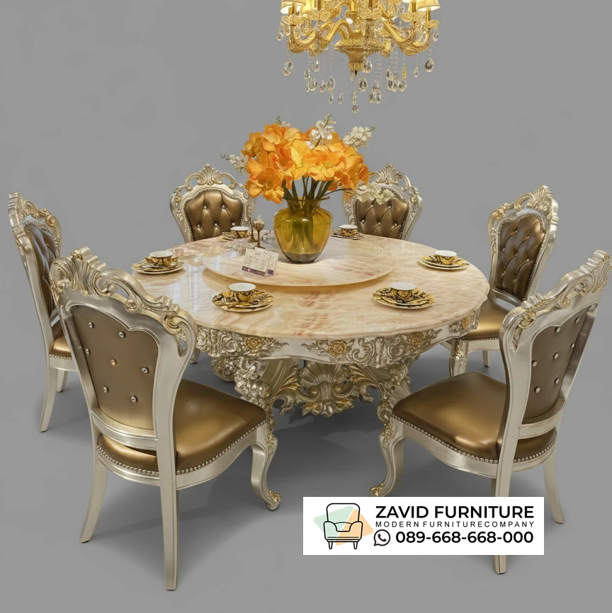 Embb. . furnitur Meja Makan Marmer Bulat Antik yang satu ini juga sangat populer di antara banyak orang dalam masyarakat. Dengan desainnya yang unik dan mewah, banyak yang menginginkannya sebagai bagian dari dekorasi interior di dalam rumah. Desain bulatnya menciptakan keakraban, sementara sentuhan antik menambah kesan elegan dan eksklusif. Dengan perawatan tepat, meja ini tidak hanya berfungsi sebagai penunjang aktivitas sehari-hari, tetapi juga bisa menjadi investasi jangka panjang yang bernilai tinggi. bentuk bulat dilihat dari segi keamanan Tidak adanya sudut tajam membuat meja makan bulat lebih aman, terutama di rumah yang memiliki anak-anak kecil yang berlarian, Bentuk bundar memberikan tampilan yang lebih lembut dan elegan, cocok untuk menciptakan pusat perhatian yang menarik di ruangan dengan lampu gantung di atasnya.