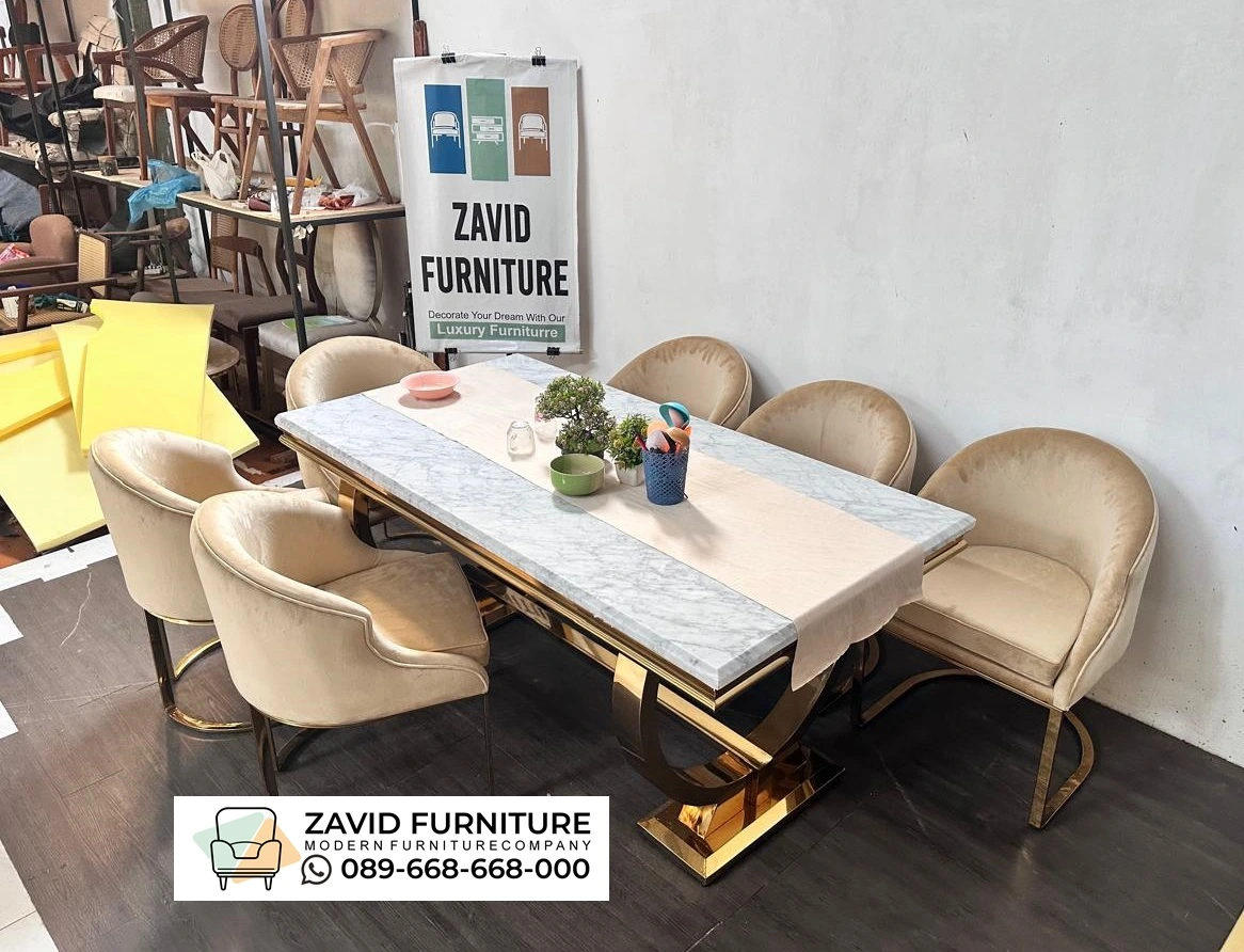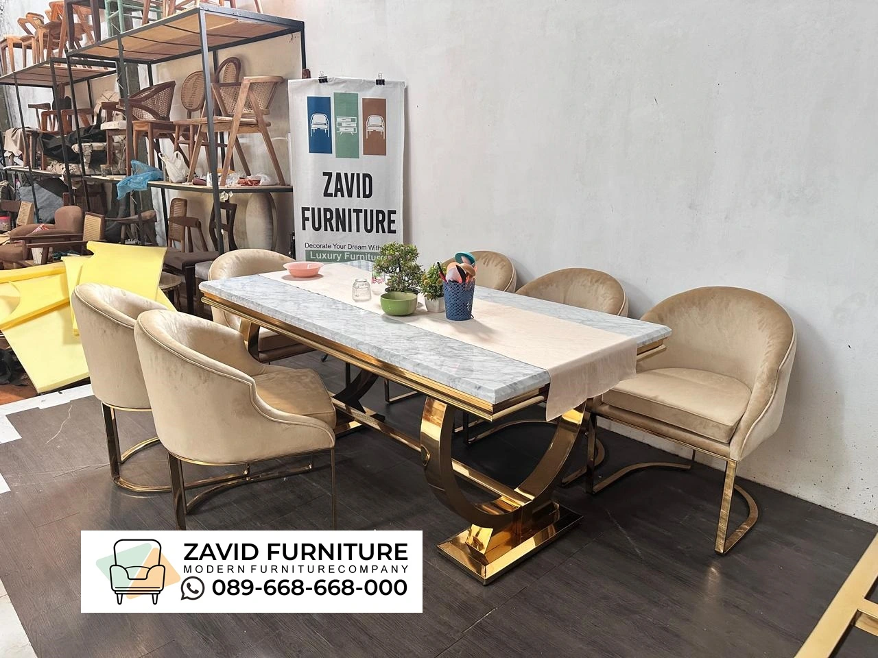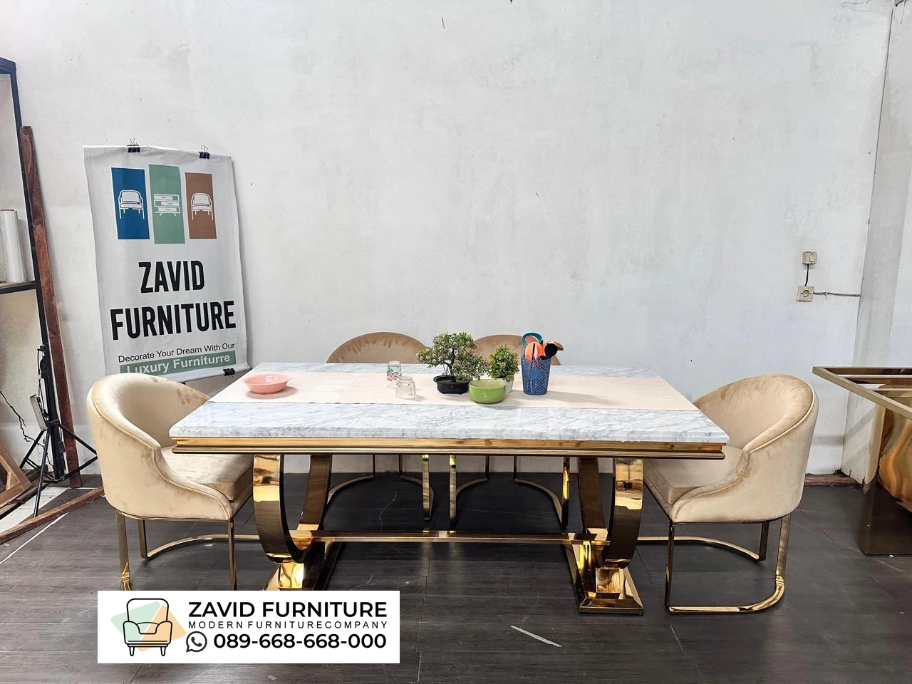 Sebenarnya untuk membuat kaki meja makan dapat terbuat dari berbagai jenis bahan seperti kayu, besi, maupun stainless. namun kami sengaja membuat produk Meja Makan Marmer Gold diatas dengan menggunakan bahan kaki meja stainless steel dengan warna gold dengan Kandungan kromium dalam stainless steel membentuk lapisan pelindung tipis yang mencegah oksidasi, sehingga sangat tahan terhadap karat dan lingkungan lembap atau asam. kaki meja stainless juga disebut memiliki keunikan tersendiri yang tidak dimiliki oleh kaki meja berbahan lainya. keunikan yang dimaksud yaitu kaki meja dari bahan stainless lebih tahan lama dan tidak akan berkarat atau korosi dan tentunya dapat selalu mengikuti perkembangan zaman.
