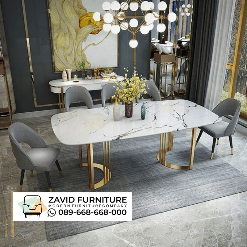 Meja Makan Marmer Putih Desain Unik Modern