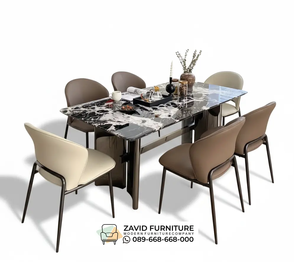 Selain granit, banyak juga yang memilih meja dari marmer. Nah, marmer sendiri merupakan jenis batuan alam yang termasuk kedalam jenis batuan metamorf atau malihan. Alasan mengapa kedua bahan ini banyak dipilih karena memiliki tampilan yang indah dan materialnya sangat kokoh dan serta tahan lama. Desainnya yang efisien membuat Meja Makan Minimalis Informa sangat cocok untuk berbagai ukuran ruangan dari apartemen dengan ukuran terbatas hingga rumah besar dengan konsep open space. Permukaannya yang rata dan halus memudahkan pembersihan setelah makan, sementara konstruksinya yang kokoh menjamin daya tahan tinggi untuk pemakaian jangka panjang.
