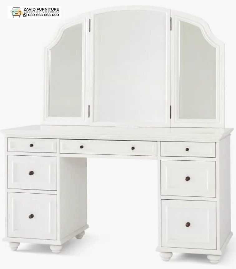 Meja rias dengan tiga cermin menawarkan area pandang yang lebih luas dan fleksibel saat berdandan, dilengkapi dengan laci penyimpanan dan desain yang bisa disesuaikan (custom) menurut kebutuhan ruang dan selera estetika kamu. Beberapa model meja rias 3 cermin yang umum termasuk desain minimalis modern, klasik dengan cermin lipat, atau versi mewah dari kayu solid seperti jati yang bisa dibuat sesuai permintaan ukuran, bahan, dan warna finishing. Sebagai contoh, model meja rias 3 cermin berbahan kayu solid dengan finishing putih diberi harga di kisaran jutaan rupiah dan sering tersedia dalam opsi custom oleh banyak pengrajin mebel.