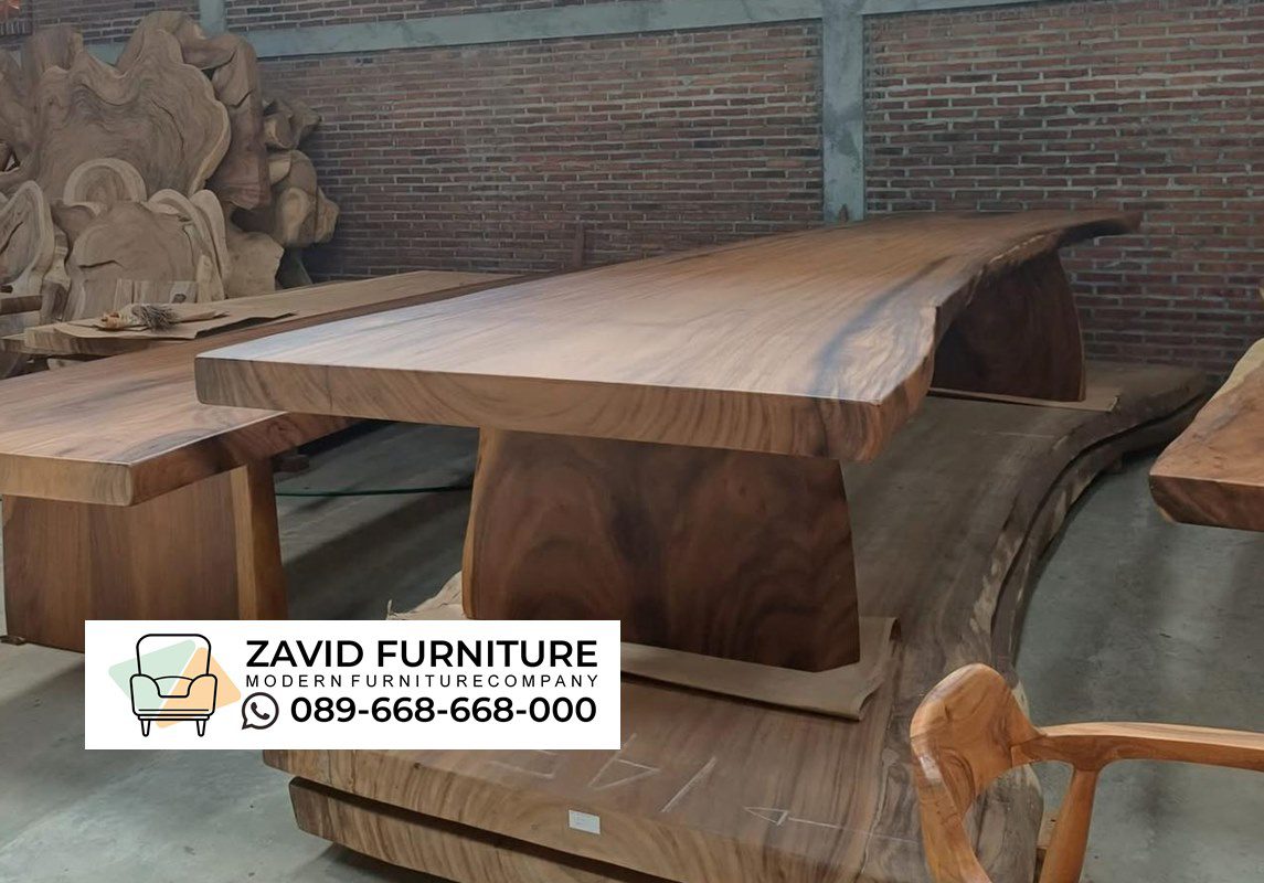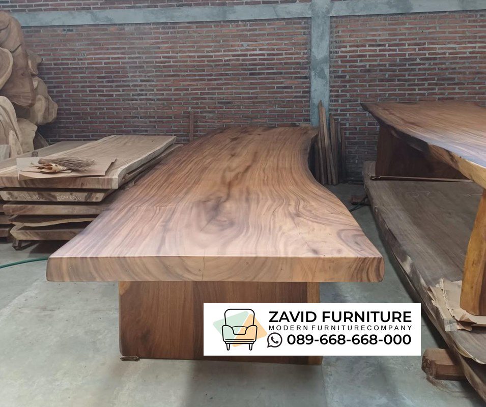 Hallo selamat pagi… kali ini kami ingin mengenalkan kepada anda meja makan yang dapat anda gunakan untuk banyak personil lhoo selain dapat digunakan untuk banyak orang juga dapat menciptakan keindahan atas keaslian dan kealamian dari meja makan ini. Meja Trembesi Jombo ini memiliki kemewahan alami yang memadukan kekuatan alam dengan keanggunan desain tradisional. Dibuat dari kayu trembesi utuh yang dikenal dengan sebutan suar wood, meja ini menawarkan tampilan megah yang menonjolkan serat alami kayu dan pola unik yang tidak bisa. Kayu trembesi terkenal akan kekuatan dan daya tahannya. Meja ini dibuat dari satu papan utuh tanpa sambungan, mempertahankan bentuk asli batang pohon, termasuk lekukan-lekukan alami yang mempertegas kesan artistik dan organik.