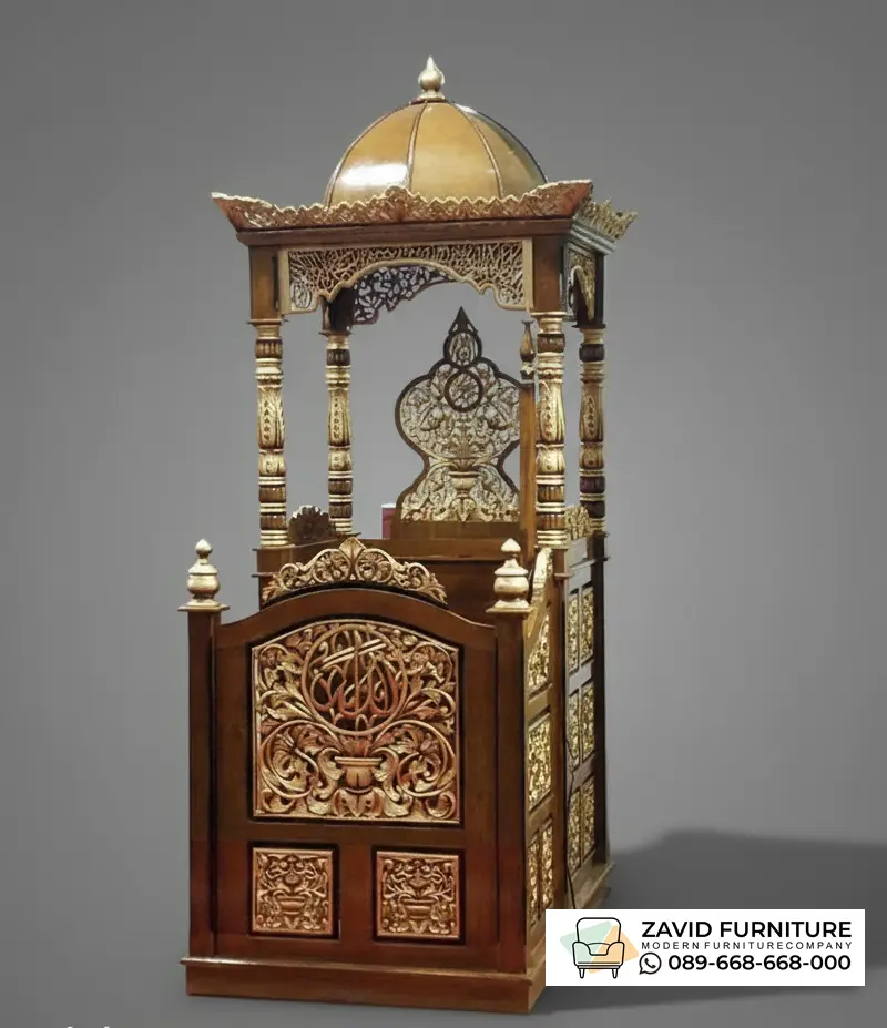 Desain Mimbar Masjid yang baik tidak hanya meningkatkan penampilan ruang ibadah, tetapi juga memberikan kenyamanan serta rasa percaya diri bagi imam saat memberikan khutbah. Dengan memilih mimbar yang sesuai, masjid akan memiliki karakter yang jelas dan menciptakan suasana ibadah yang lebih khusyuk dan bermakna bagi masyarakat kabupaten Ogan Ilir kami menyediakan berbagai jenis Mimbar Masjid Ogan Ilir tentunya dengan kualitas produk terbaik yang dapat digunakan dalam jangka panjang.