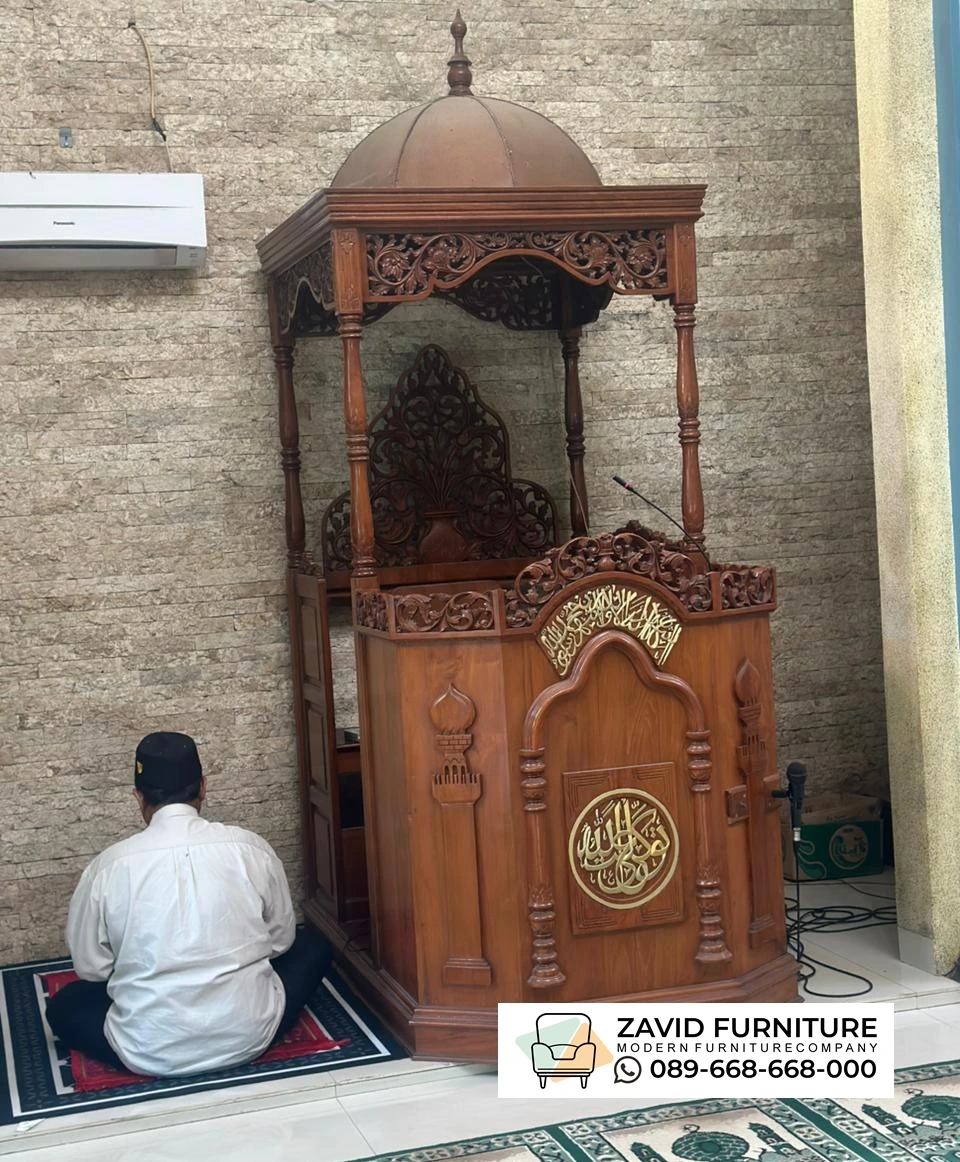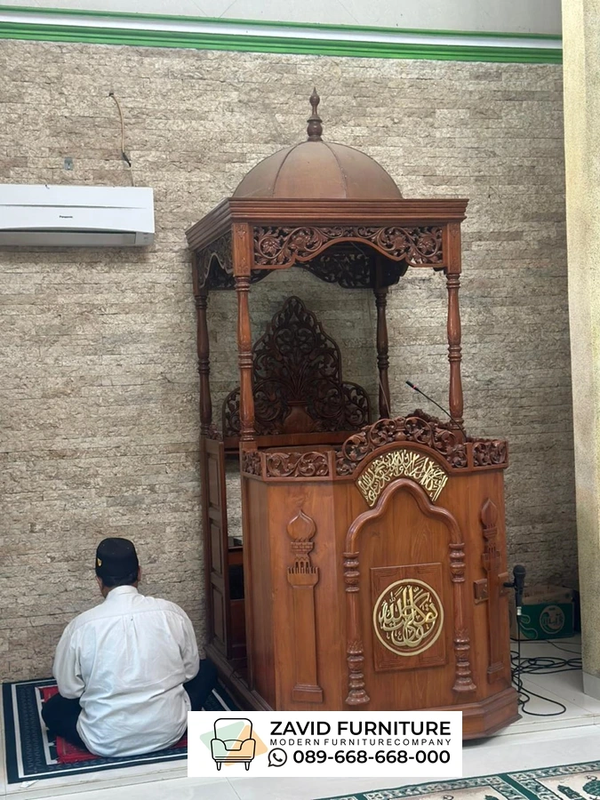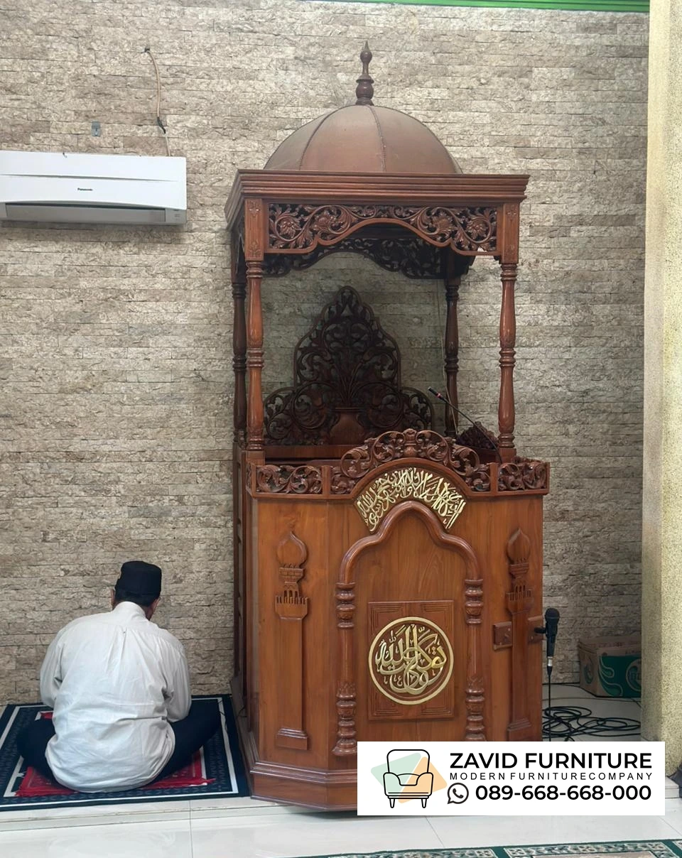 Secara keseluruhan, mimbar masjid adalah perpaduan antara fungsi, estetika, dan nilai spiritual. Penggunaan kayu berkualitas seperti jati, dipadukan dengan desain indah dan pengerjaan yang rapi, menjadikan mimbar bukan hanya perabot, tetapi juga sebuah karya seni yang memperindah rumah ibadah. Memilih mimbar yang tepat berarti memberikan kenyamanan bagi khatib, keindahan bagi ruangan masjid, serta kehormatan bagi tempat ibadah yang mulia.