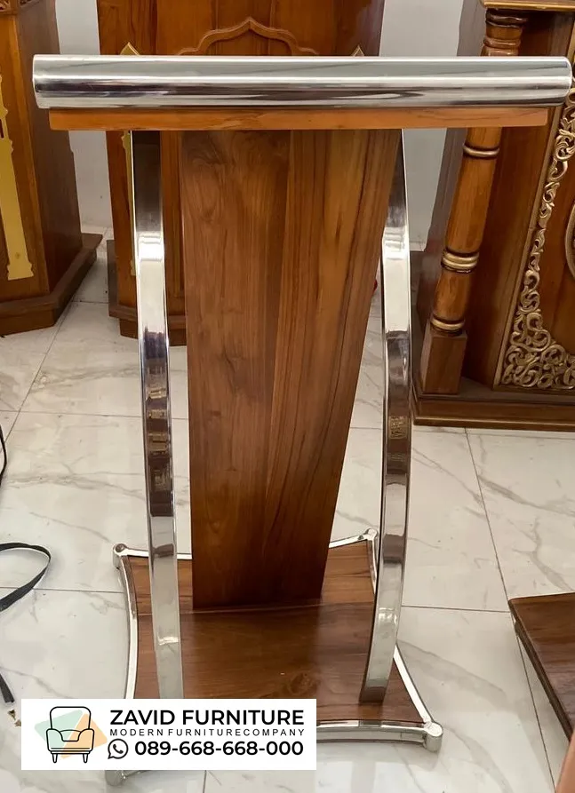 Kebanyakan orang menyukai desain sederhana namun tetap terlihat eksklusif, Podium Ceramah Depok Kayu Jati Stainless adalah pilihan tepat. Mengusung garis desain bersih dan proporsi seimbang, podium ini sangat cocok untuk ruang modern seperti ruang meeting, aula sekolah, hingga gedung perkantoran. Material kayu jati solid memberikan kesan hangat sekaligus profesional. Tanpa banyak ornamen, keindahan podium ini justru muncul dari serat kayu jati alami yang unik di setiap unit.