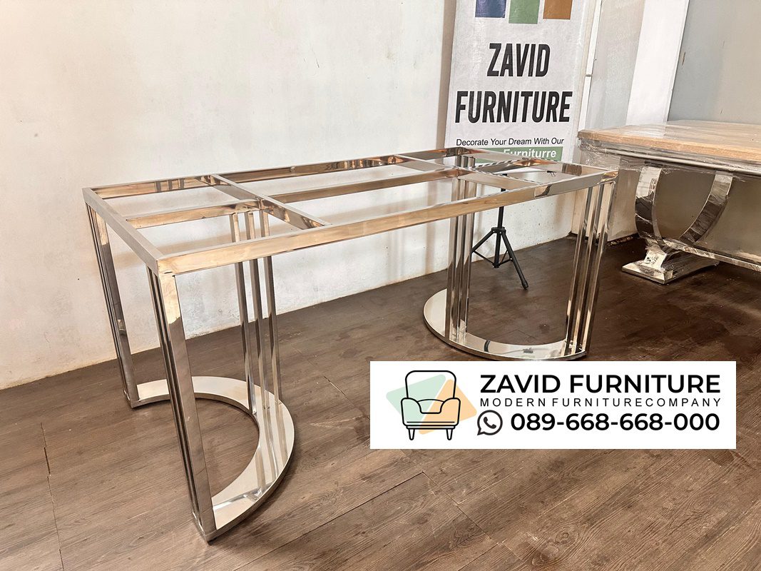 Furniture stainless saat ini sedang naik daun bahkan saat ini banyak kolektor yang banyak mencari kaki meja dengan bahan stainless. sebab menurut mereka kaki meja yang terbuat dari bahan stainles dapat memberikan nuansa mewah dan elegant untuk ruang makan apalagi jika di padukan dengan bahan terbaik seperti marmer, granit, kaca atau kayu. rangka Kaki Meja Stainless merupakan komponen penting dalam pembuatan meja . sebab furniture yang terbuat dari bahan stainless steel atau baja tahan karat memiliki kekuatan dan ketahanannya terhadap korosi, serta tampilannya yang modern dan elegan.