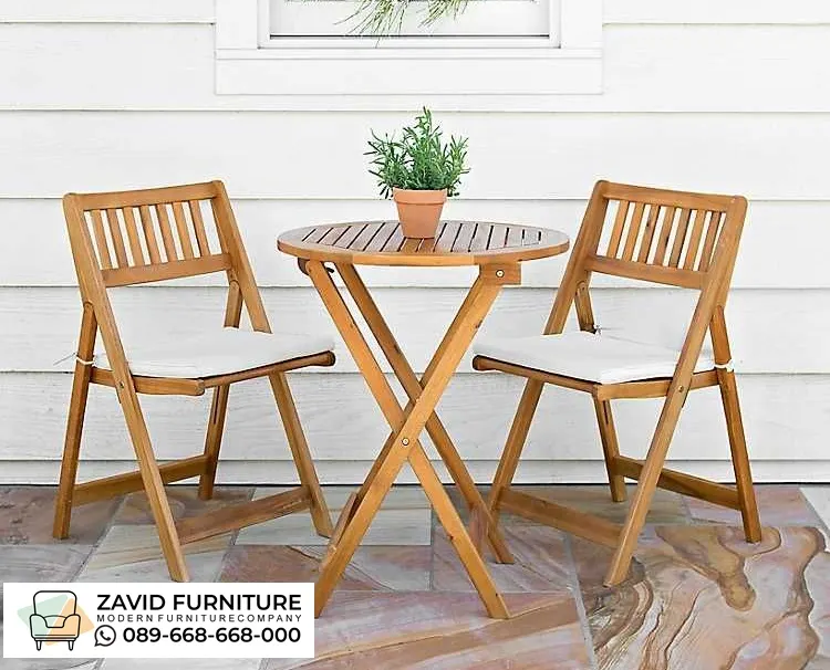 Set produk kali ini adalah set kursi teras lipat yang punya desain sederhana dan alami. Ini sangat pas untuk balkon, taman kecil, atau teras rumah. Dibuat dari kayu yang kuat (seperti kayu jati atau akasia) dengan lapisan warna cokelat muda yang menunjukkan serat kayunya dengan jelas. Meja dan kursinya bisa dilipat, jadi gampang untuk disimpan ketika tidak dipakai atau dipindah-pindah agar menghemat tempat.