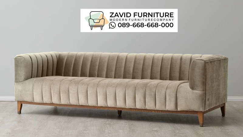 Sofa ini didukung oleh kaki kayu dengan finishing alami yang kuat, menambah nuansa organik yang khas dari gaya interior Nordik. Dilapisi dengan kain beludru berkualitas tinggi dalam warna champagne/taupe, memberikan kilau lembut dan sentuhan ekstra lembut saat disentuh. Detail garis-garis yang jelas pada sandaran dan dudukan menciptakan tekstur visual yang kaya sekaligus memberikan kesan ruang yang lebih luas dan teratur.