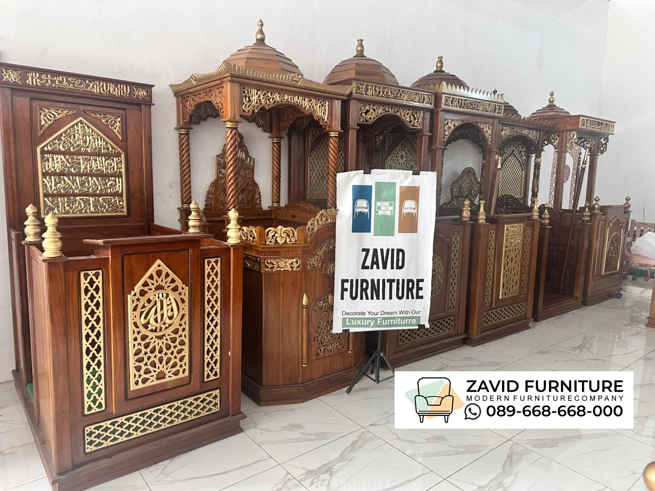 Kami jual mimbar masjid terdekat di kota jepara tentunya dengan harga yang lebih murah dengan kualitas bahan terbaik sebab kami merupakan produsen pembuatan mimbar langsung dibuat dengan tangan tangan terampil oleh warga kota jepara yang sudah berpengalaman hingga bertahun tahun dari zaman dulu. jadi anda tidak perlu bingung lagi dalam memilih toko mimbar masjid terdekat dari kota anda pilih saja dari toko kami dengan cara langsung saja menghubungi nomer yang sudah kami sediakan di gambar.
